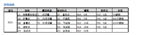 型號BQG-LX-FI-SD-H20-P03-316代表用于20米內(nèi)浮頂罐的菱形架,手搖式罐下采樣器,316不銹鋼材質(zhì),取樣點3個