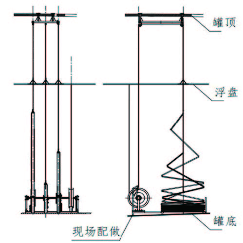 依據(jù)等比例伸縮架的特點,將采樣點固定在伸縮菱形架上,伸縮架頂部固定在浮球/浮盤上,伸縮架底部牢固的固定在儲罐底部。當(dāng)儲罐內(nèi)油品液位上下浮動時,伸縮架上的采樣點會隨著液位的變化而變化,以此確保采樣的準(zhǔn)確性。