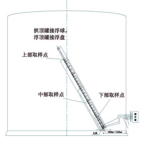 每個采樣點的取樣管路都是相互獨立的,取樣管路連接至罐外密閉取樣箱。占用較少儲罐內(nèi)部空間,安裝方便,取樣點誤差較小??稍谏炜s架頂部安裝浮球/浮盤,伸縮架占地面積小,適應(yīng)國內(nèi)大多數(shù)儲罐使用
