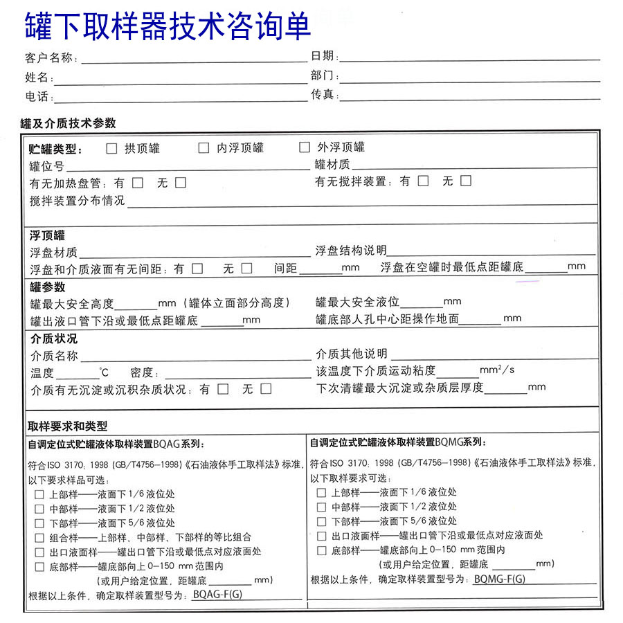為了解決上述取樣問題,本公司遵照GB/T 4756 《石油液體手工取樣法》標(biāo)準(zhǔn),吸收國內(nèi)外罐下采樣器的先進(jìn)技術(shù),從國內(nèi)石油化工行業(yè)實(shí)際取樣情況出發(fā),研制了“罐下采樣器”,實(shí)現(xiàn)了油罐內(nèi)不同點(diǎn)位的樣品可在罐下外置的密閉取樣控制箱中直接采樣,無需爬罐。該罐下采樣器安全環(huán)保、省時(shí)省力、準(zhǔn)確可靠、易于管理,并且安裝方便、結(jié)構(gòu)簡單!