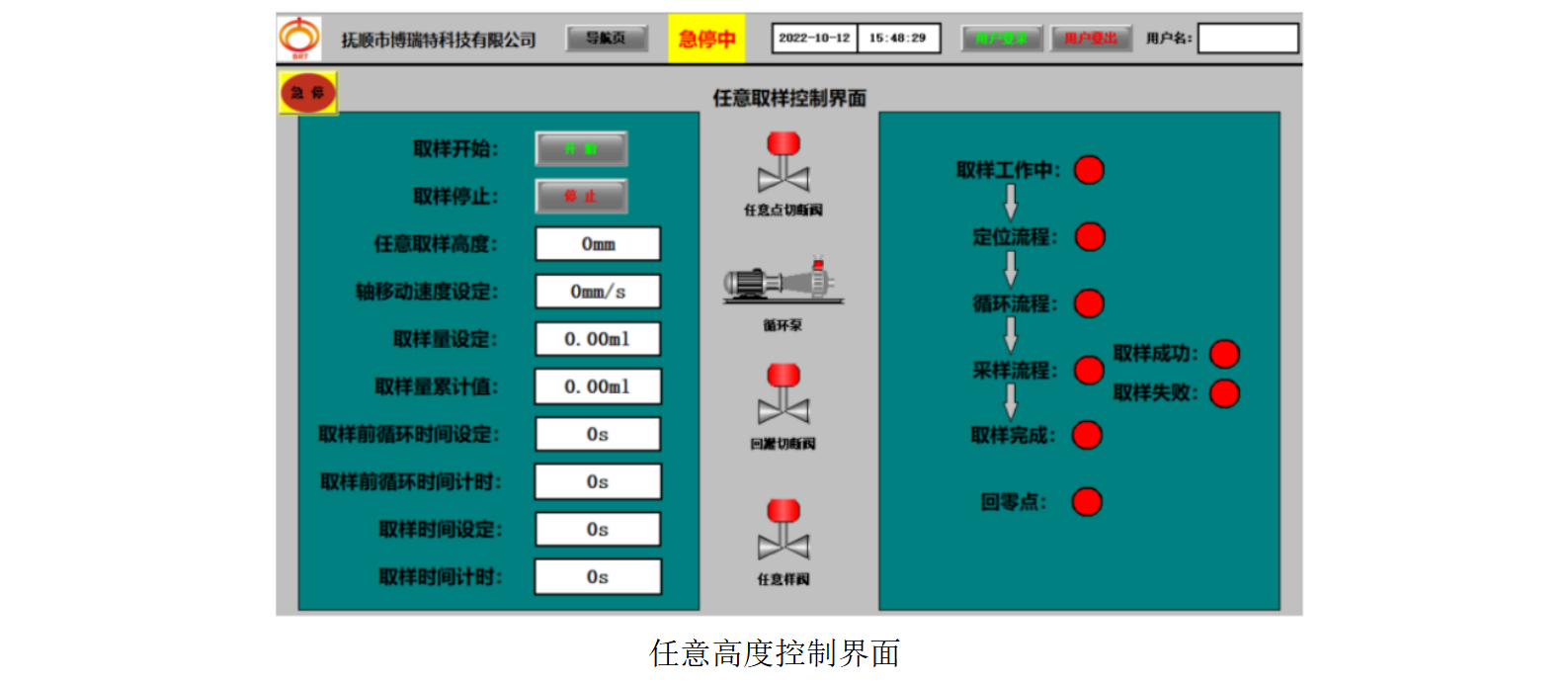 ◆如需中途停止取樣工作,可按“急停”按鈕,此時停止取樣工作。